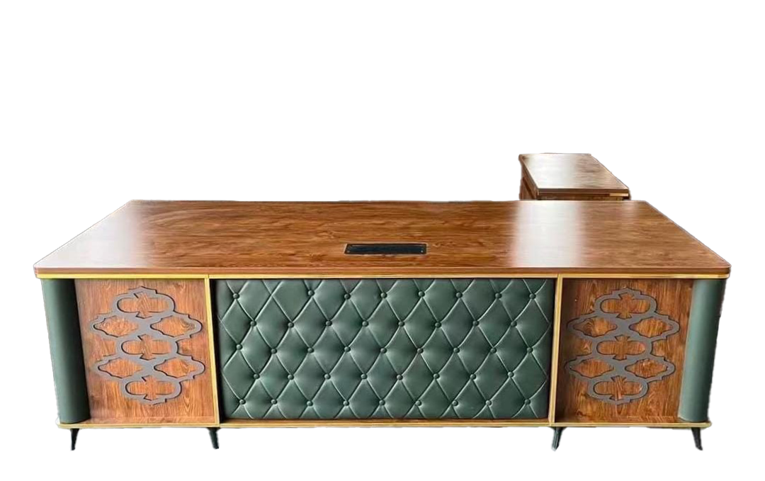Elevate your workspace with our wooden office table featuring a diamond-cushion finish, where elegance meets comfort. Expertly crafted from premium wood, this table offers a sturdy and stylish foundation for productivity. The integrated diamond-stitched cushion detailing adds a touch of luxury and sophistication, making it a standout piece in any executive or home office. Perfect for those who value both functionality and refined design.
