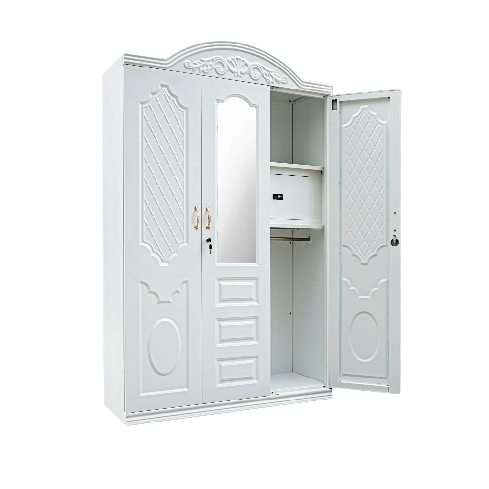 This 3 Door Modern Almirah is crafted from high-quality MDF board and finished with smooth Duco paint for a sleek, contemporary look. It features well-organized storage with shelves and hanging space. Perfect for modern homes seeking style and functionality.